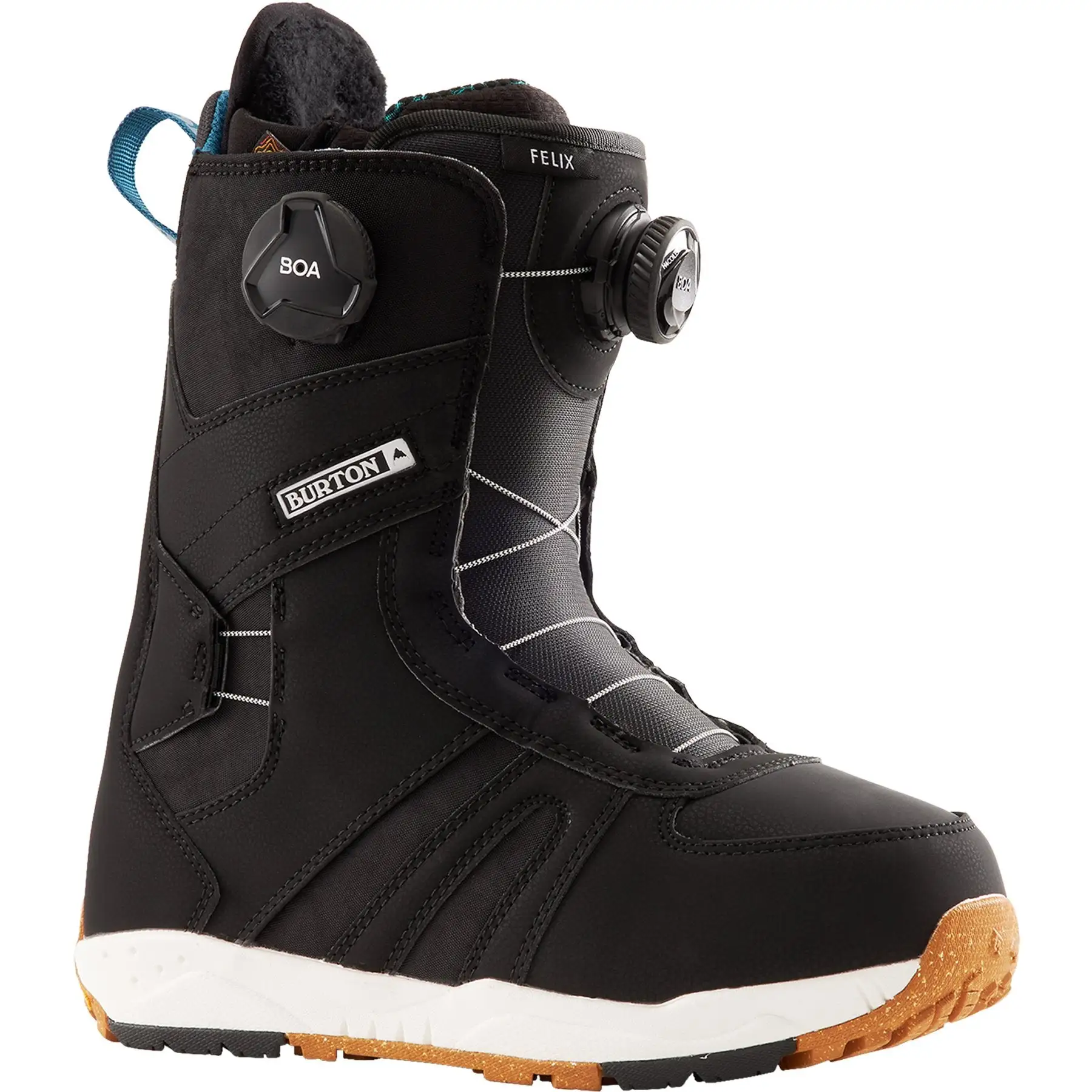 The Felix Boa features a Vibram EST Outsole, which provides lightweight, durable cushioning, specially formulated for snowboarding. Strategically placed rubber patches enhance traction and durability at the forefoot and heel, and it’s made from 30% recycled content, so it has a lighter footprint on the planet as well. A low profile, lightweight layer of Sleeping Bag Reflective Foil underfoot reflects heat from your foot back into the boot, keeping the heat in and the cold out, and Burtons ReBounce cushioning adds a layer of impact protection directly below your foot for more comfort and less fatigue.