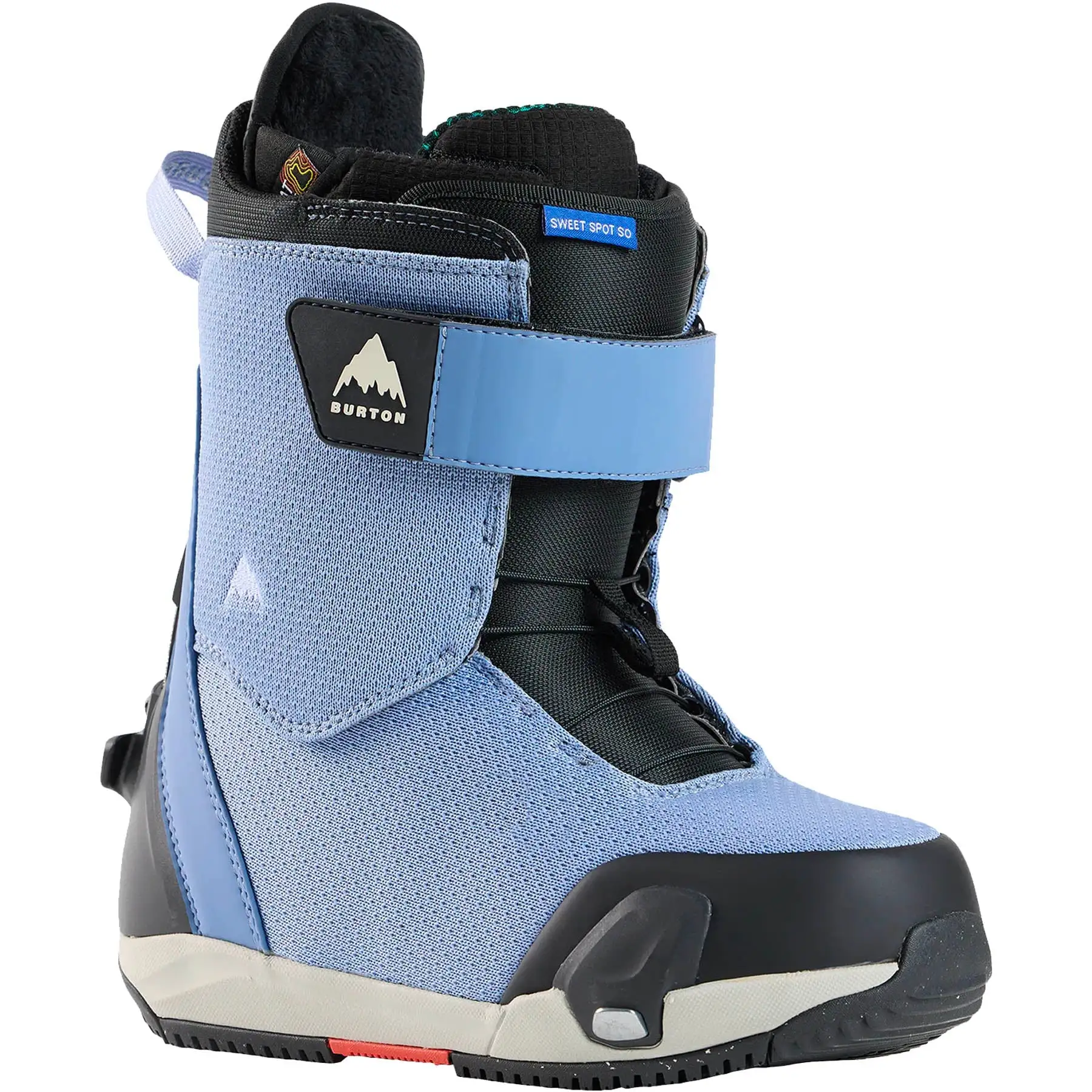 Burton’s Sweetspot Speed-Zone Lacing consists of one lacing zone which tightens the boot in the lower section of your foot keeping you locked in where you need it the most. The addition of an upper Power Strap adds additional stability and response in the boot while still having a softer, more playful freestyle flex.
