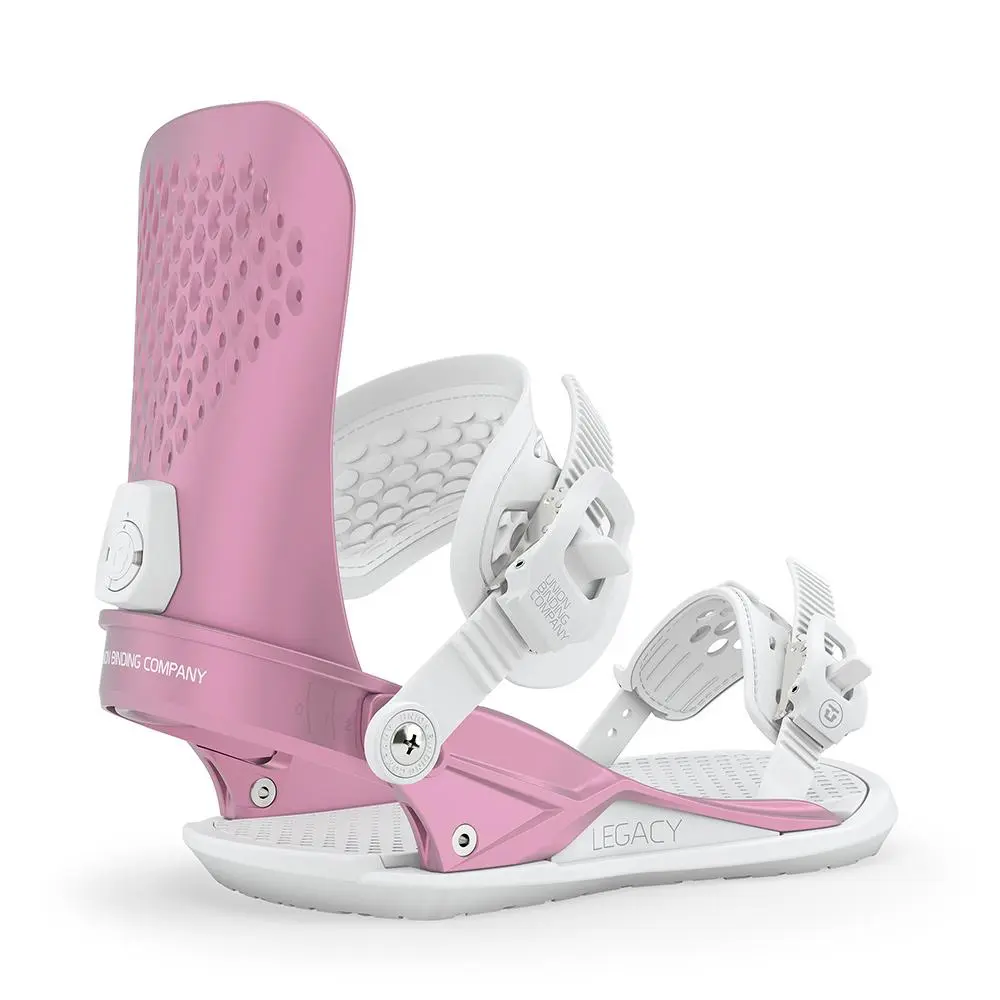 The 2020 Union Legacy is an aggressive high end womens snowboard binding with a 100% female specific anatomically correct design. The Legacy is not for the faint of heart, offering premium performance designed for big mountains, hard carves, and world class competitions, with a responsive flex that does what you want, when you want. The incredible tech in the Legacy keeps the performance high and the weight low, making it one of the lightest bindings ever produced at a minuscule 699 grams. This is achieved through using lightweight, durable parts and materials, like magnesium ratchets, forma ankle straps, and fused vaporlite bushings that absorb impacts and dampen vibrations in your board, creating a smooth, high-performance ride that can take on anything the mountain throws at you.